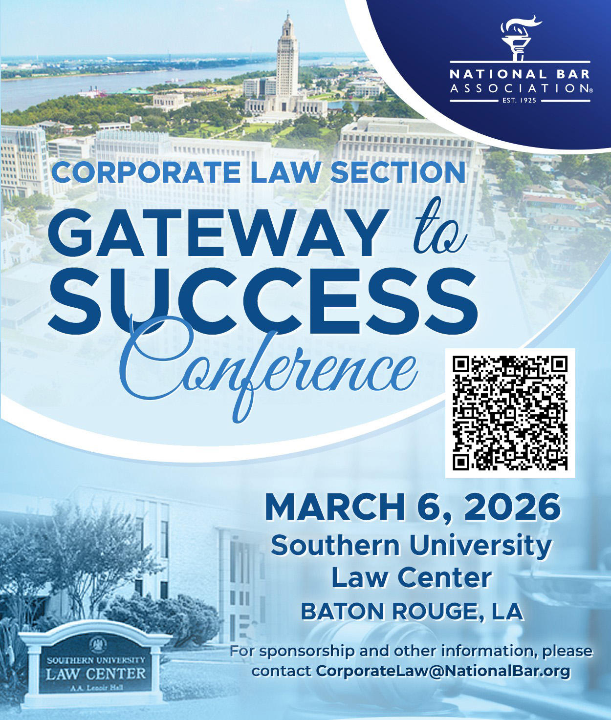 The 14th Annual Gateway to Success Conference will be held on the historic campus of Southern University Law Center in Baton Rouge, LA. The Gateway to Success Conference is a premier, one-day event designed to provide substantive legal knowledge and career-building strategies. Set in an intimate environment, this conference offers the rare time and space to forge authentic connections with industry titans. Focusing on the trajectory toward GC, CLO, Managing Partner, and Board roles, our curriculum delivers the substantive legal expertise and career architecture needed to scale the next summit of your professional journey. Simultaneously, we are dedicated to mentoring the next generation, providing law students with a direct pipeline to the world of corporate practice.